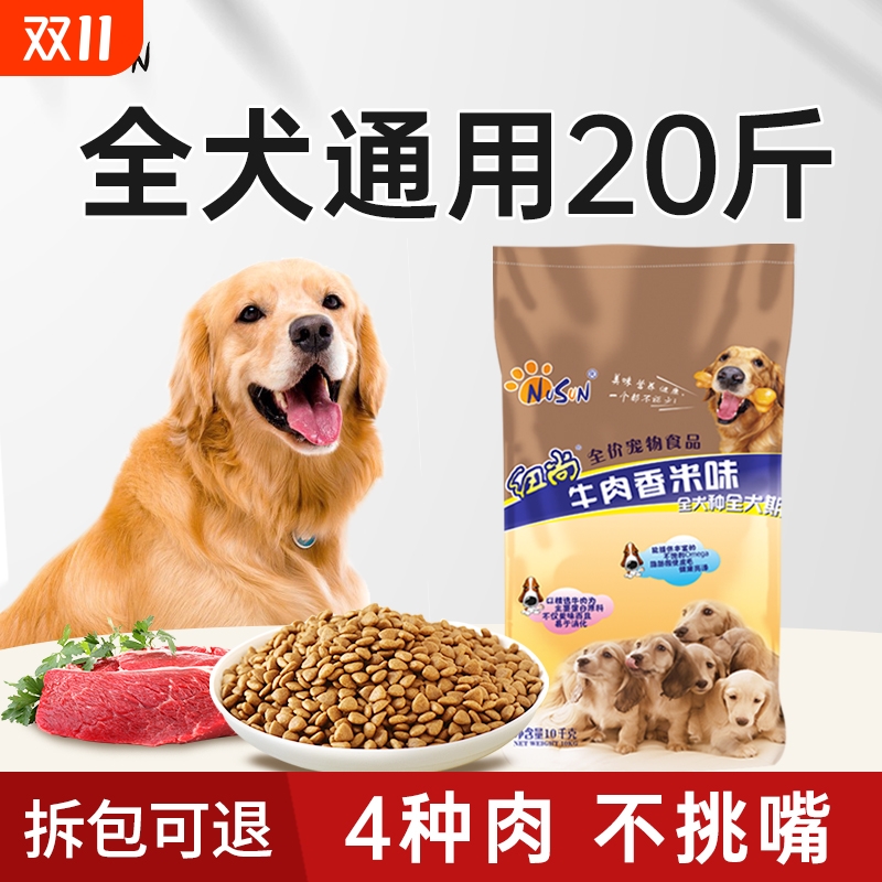 疯狂小狗牛肉香菇狗粮10kg20kg金毛边牧中大型犬成犬40斤装