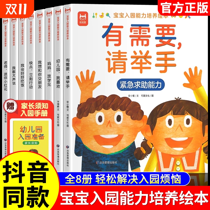 抖音同款宝宝入园能力培养绘本全8册上幼儿园准备儿童小中大班早教0