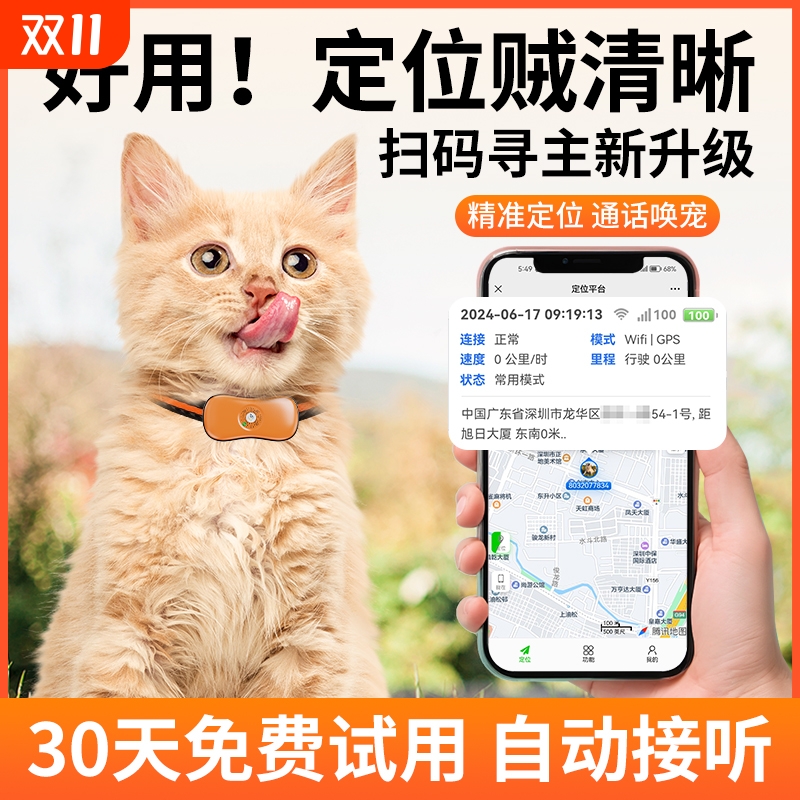 宠物定位追踪器防走失订位器狗狗项圈防水超长待机进口芯片