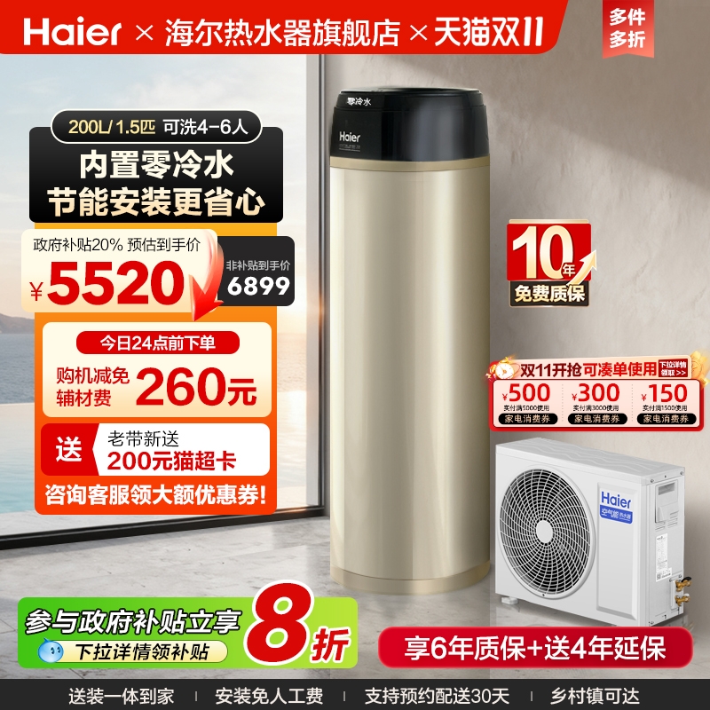 卡萨帝空气能热水器家用200升超一级全变频热泵大水量JF7