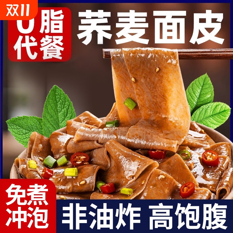 【限时抢购】荞麦面皮麻酱全麦粗粮肥代餐主食免煮0脂肪面饼速食