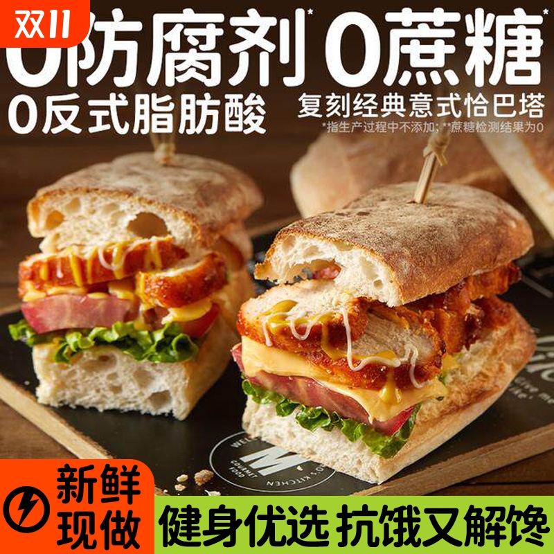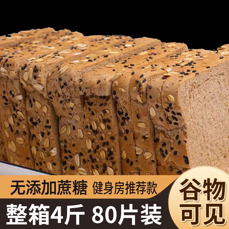 全麦面包0脂肪无糖精黑麦代餐饱腹食品荞麦粗粮早餐吐司ty健身