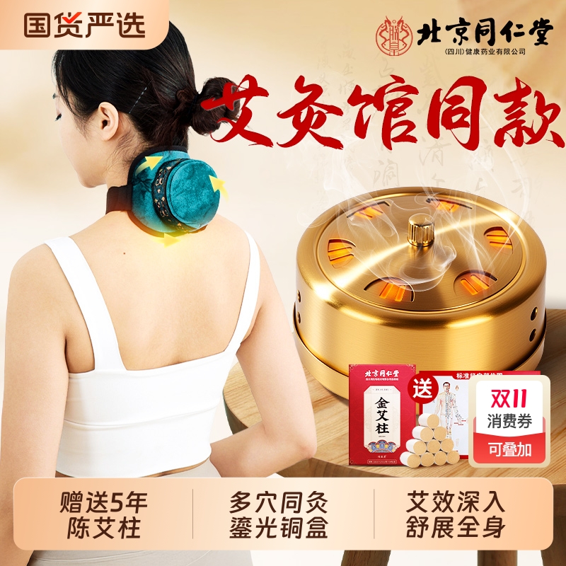 北京同仁堂艾灸盒随身灸家用艾炙器具大全纯艾草柱无烟热敷包腹部