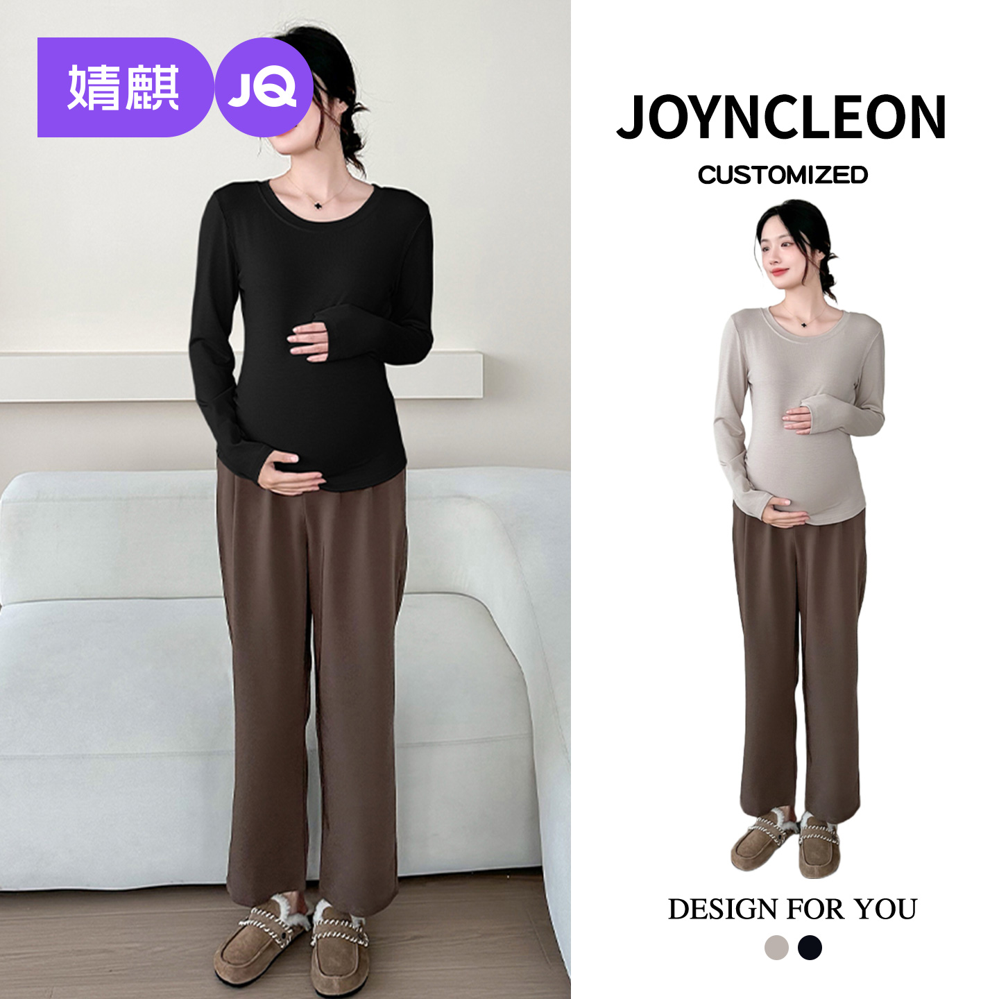 孕妇装秋套装2025新款时尚穿搭上衣衬衫阔腿裤秋季小个子两件套女
