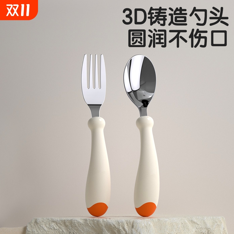 304不锈钢儿童勺子叉子辅食婴儿宝宝训练自主进食勺吃饭餐具专用
