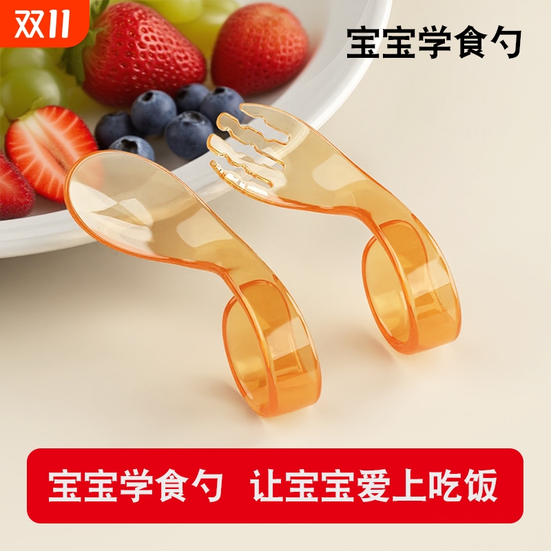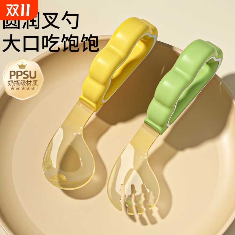 婴儿学吃饭训练辅食勺ppsu叉勺宝宝自主进食勺子儿童餐具套装