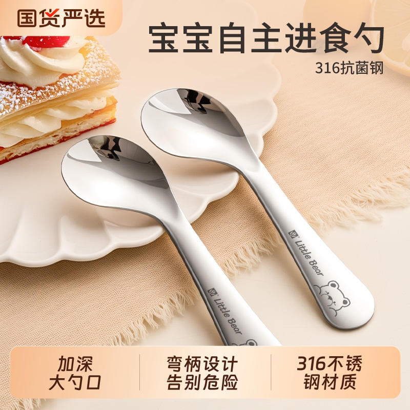 婴儿勺子宝宝学吃训练勺自主进食辅食叉勺316L不锈钢儿童吃饭餐具
