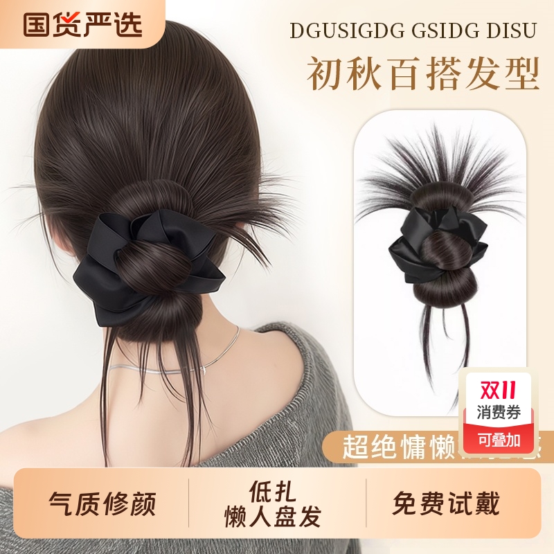 丸子头假发抓夹发圈鸡毛花苞头氛围感盘发神器自然蓬松低扎假发包