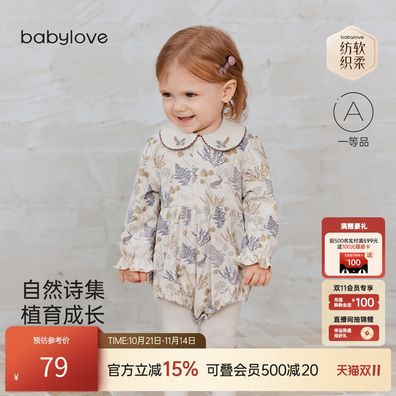 【清仓】babylove【纺软织柔】女宝宝包屁衣春秋纯棉衣服自然