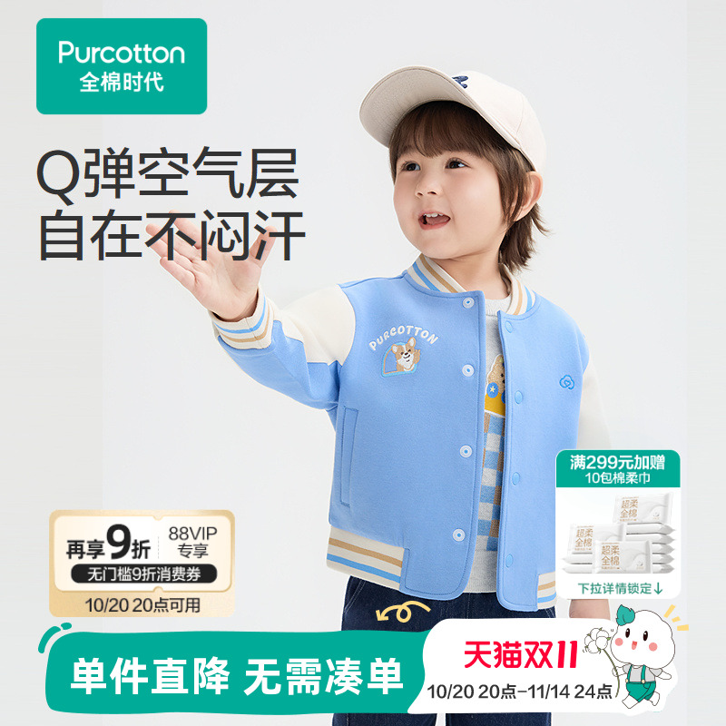 全棉时代儿童外套男幼童舒弹空气层棒球领外套童趣绣花秋冬新款