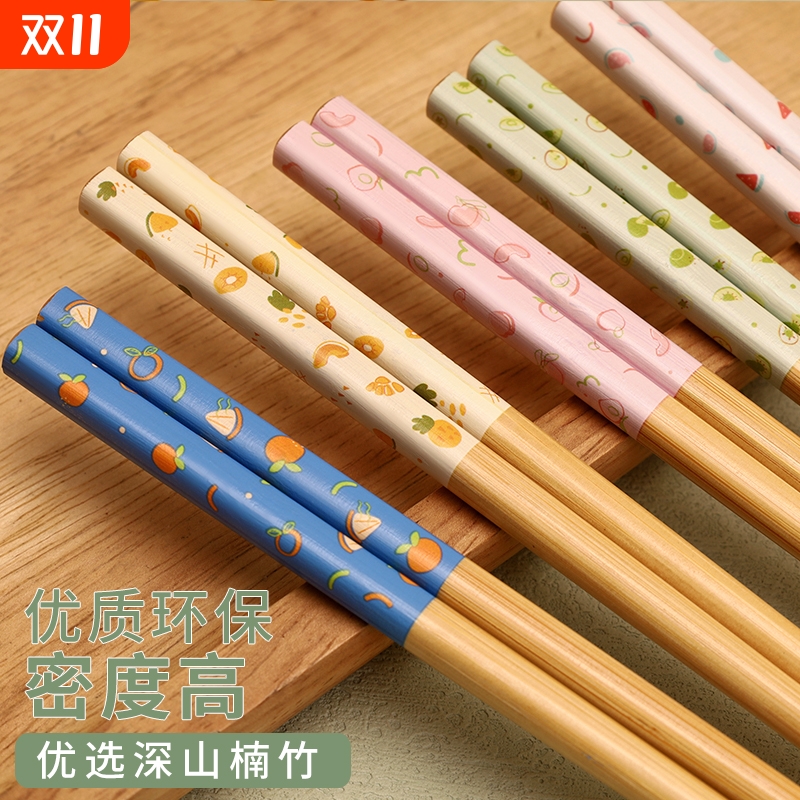 天然楠竹 防滑筷子家用抗菌防霉可爱水果竹木快子分餐5色一人一筷