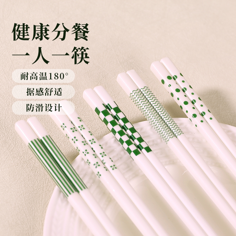 高档陶瓷筷子家庭抗菌防霉耐高温防滑餐具家用一人一筷分餐筷轻奢