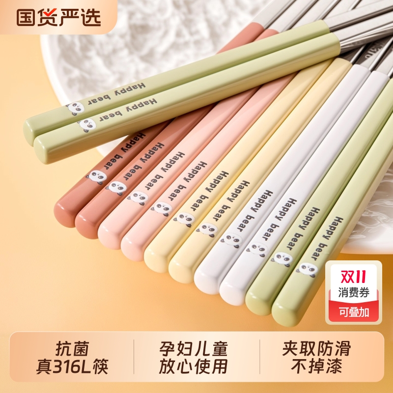 抗菌316不锈钢筷子一人一筷分餐家用耐高温防滑防霉高档餐具快子