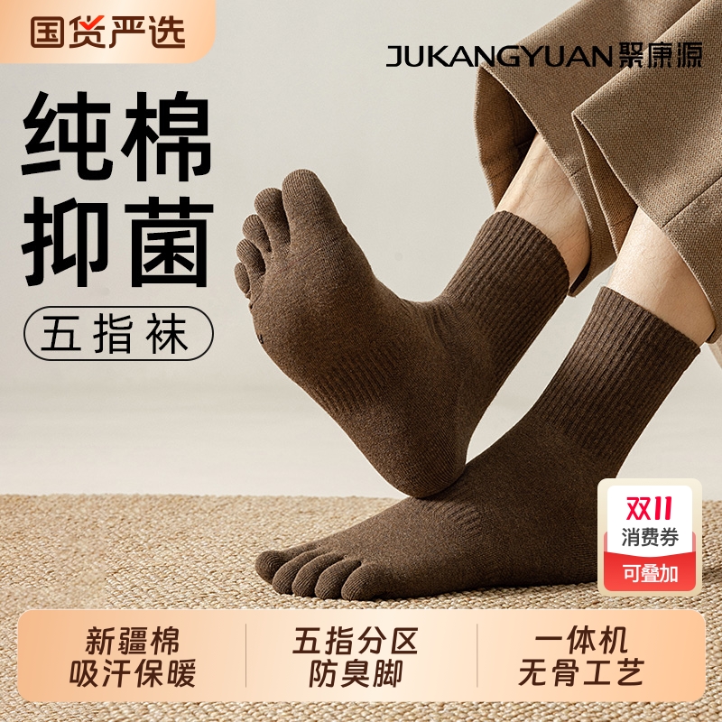 五指袜子男士中筒袜秋冬季纯棉吸汗防臭长筒春秋款长袜分趾袜抗菌