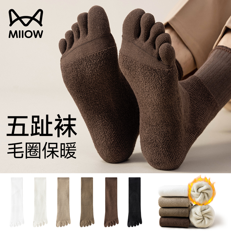 猫人五趾分趾毛圈保暖五指袜