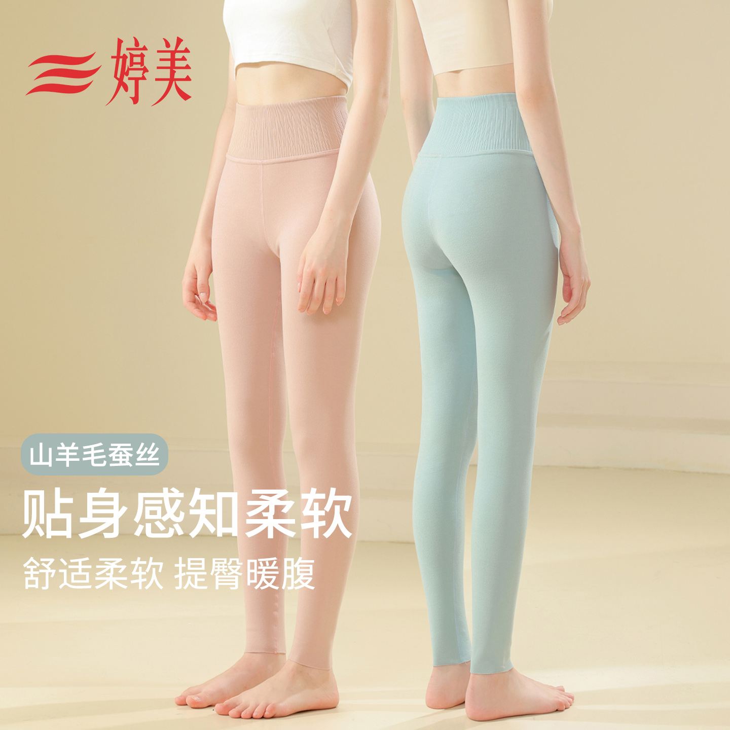 婷美秋冬桑蚕丝加绒蓄热保暖裤女