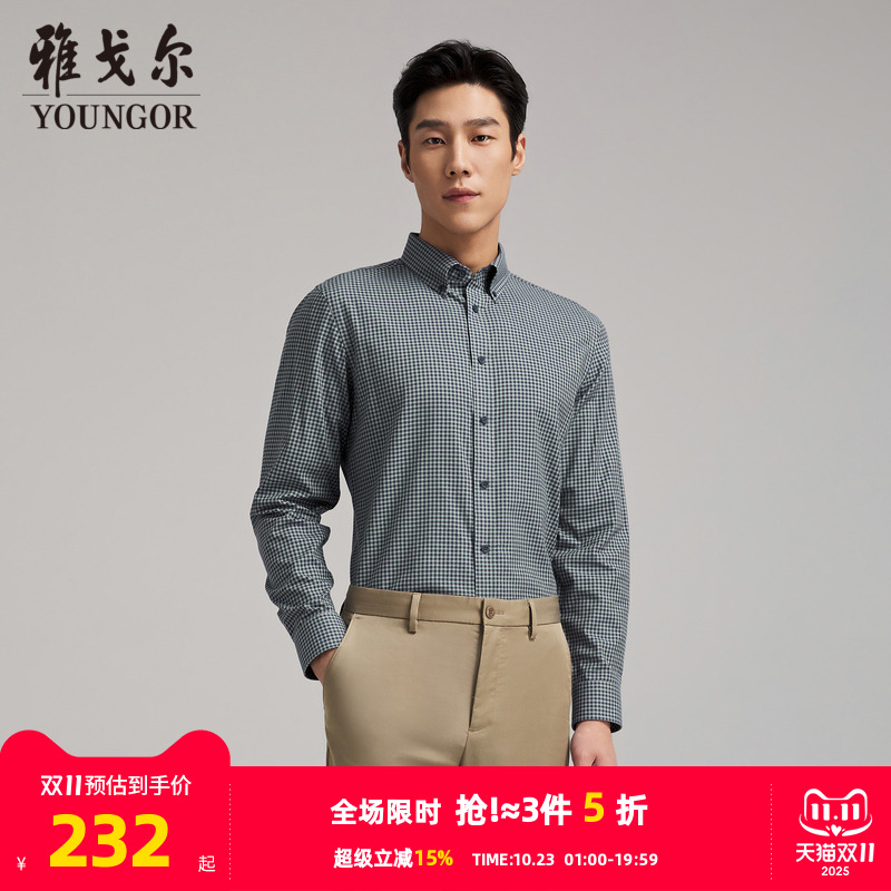 雅戈尔领尖打扣长袖商务休闲衬衫