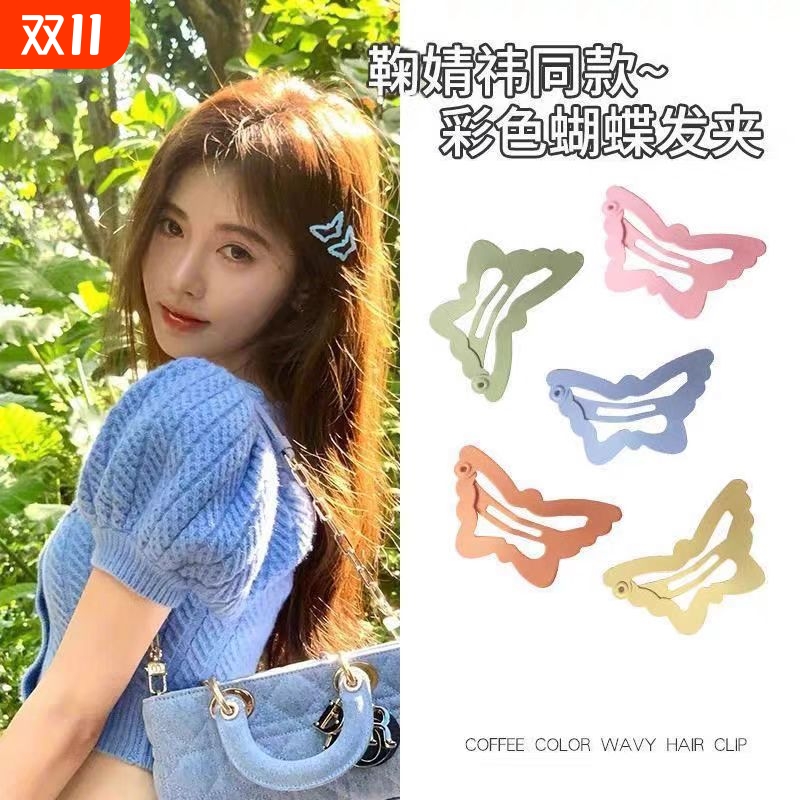 鞠婧祎同款发夹蓝色蝴蝶发卡侧边夹磨砂金属夹子公主造型发饰头饰