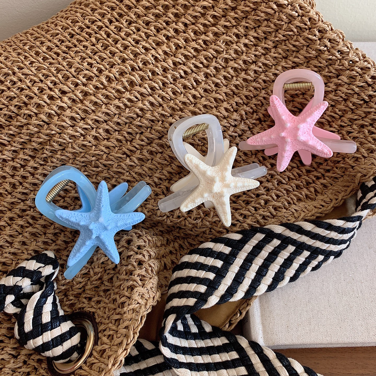 海星抓夹~海边度假风蓝色后脑勺盘发鲨鱼夹2025夏季新款发卡发饰