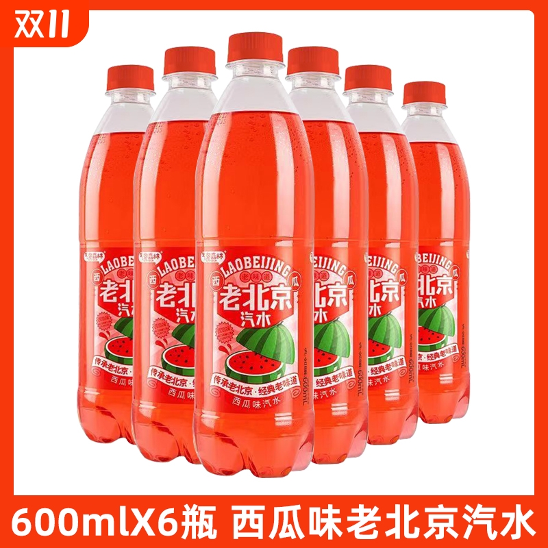西瓜味汽水饮品600ml*6瓶老北京夏季解渴碳酸饮料特价瓶装苹果