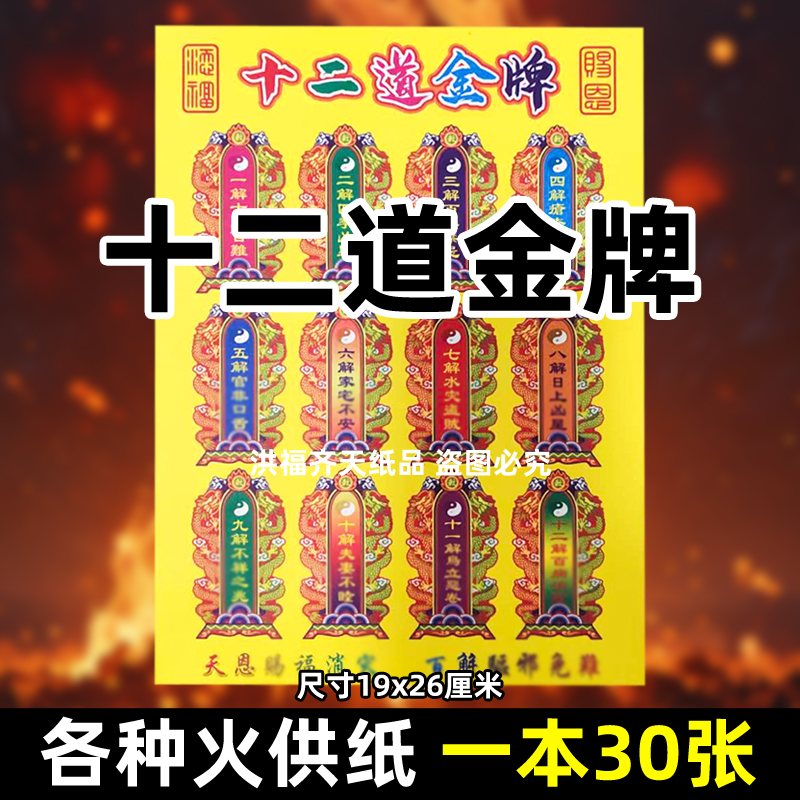 30张十二道金牌火供纸通用烧纸金票打黄纸上供表文书疏消z白解