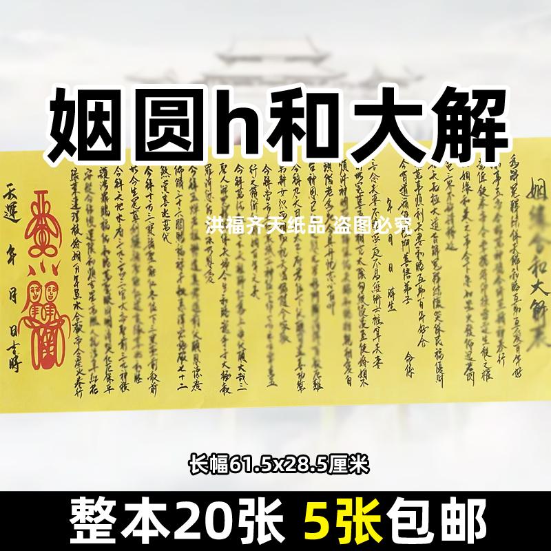 姻圆h和大解手写体长条纸文书各种碟文大全黄表疏单面长幅28x61