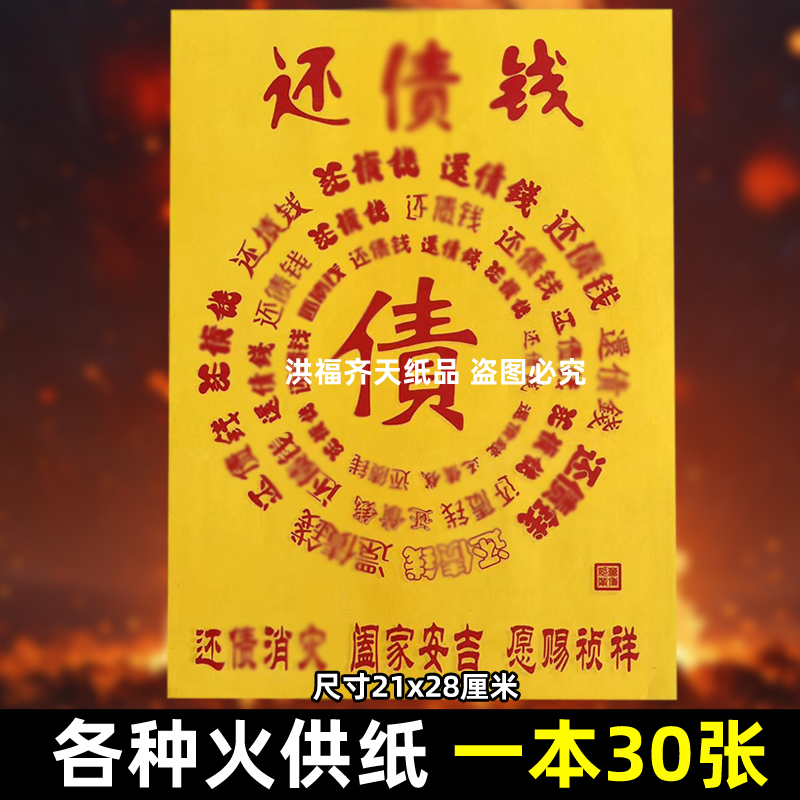 30张通天百b解火供纸彩印通用烧纸金票打黄纸上供表文书清净平安