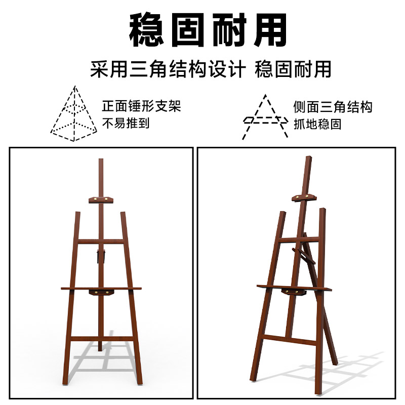 青竹画架画板美术生专用实木胡桃色油画架后撑支架式可折叠专业丙烯水