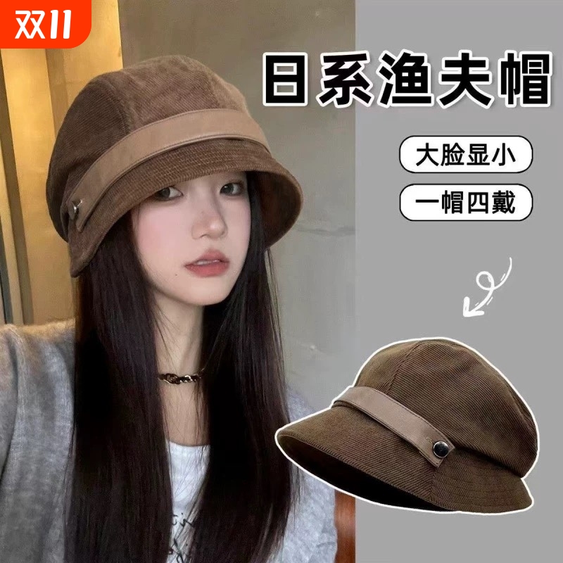 高品质灯芯绒渔夫帽一帽多戴