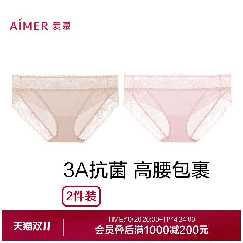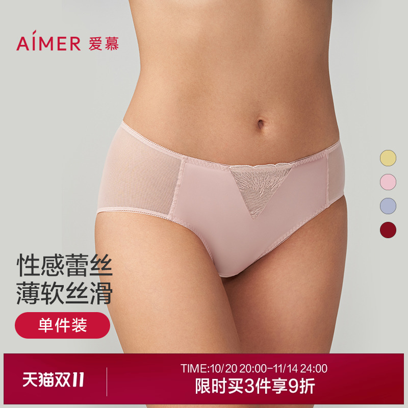 3条179元|爱慕森语内裤女棉质底裆性感蕾丝中腰平角裤AM23C