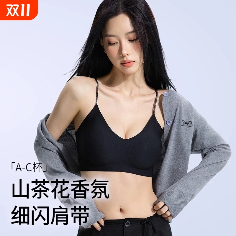 [春秋质量版]果胶胶吊带无痕透气不闷无钢圈小胸聚拢内搭文胸罩