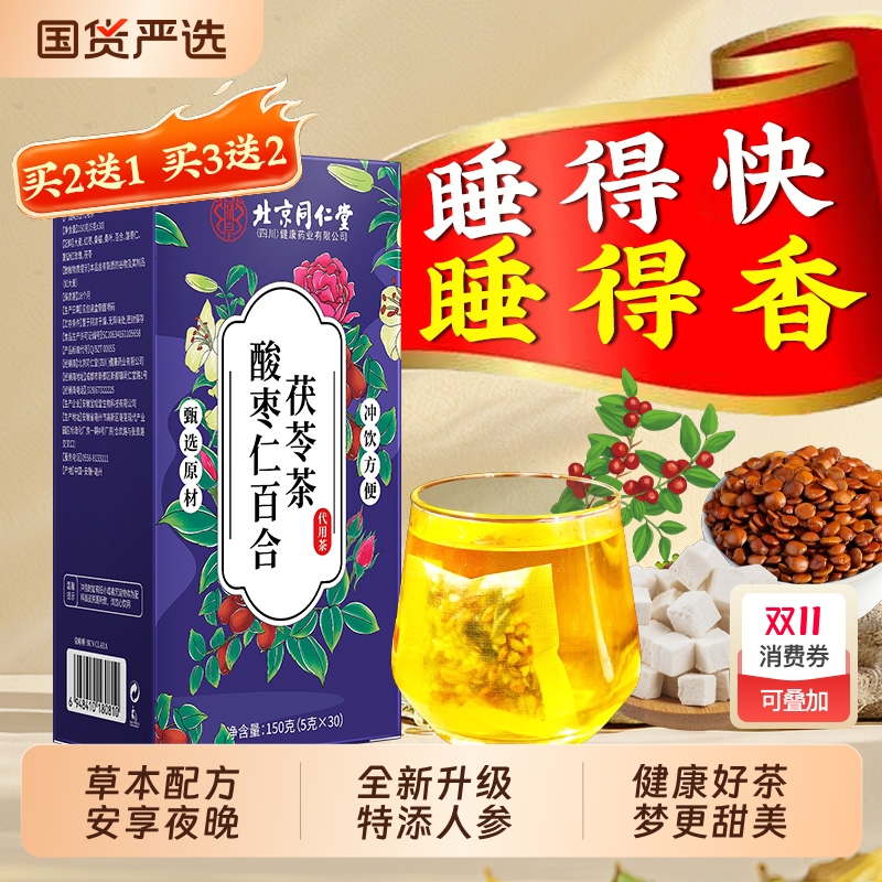 同仁堂酸枣仁百合茯苓茶眠睡非安助神眠失眠多梦质量差养生茶包罐
