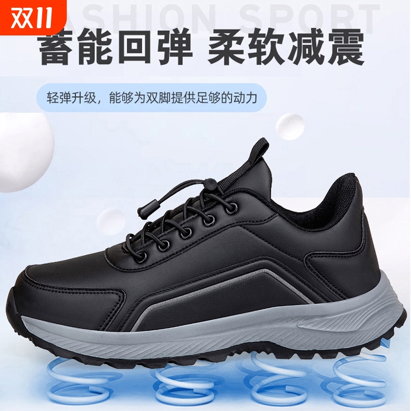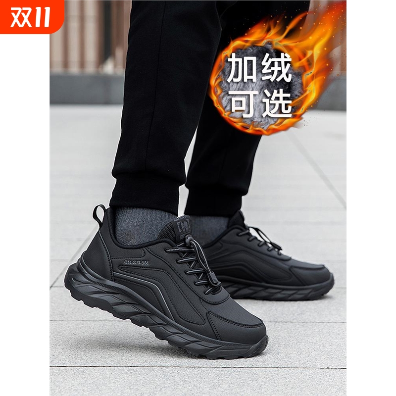 寿足力老人健步鞋秋冬舒适软底防滑爸妈鞋中老年防水皮面运动鞋子