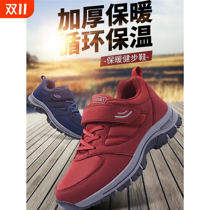 寿足力老人健步鞋冬款男女加绒棉鞋爸爸羊毛中老年舒适软底休闲鞋