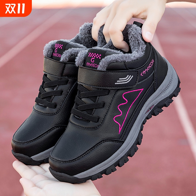 寿足力老人健步鞋女舒适棉鞋冬季雪地靴子中老年皮面运动鞋子男款
