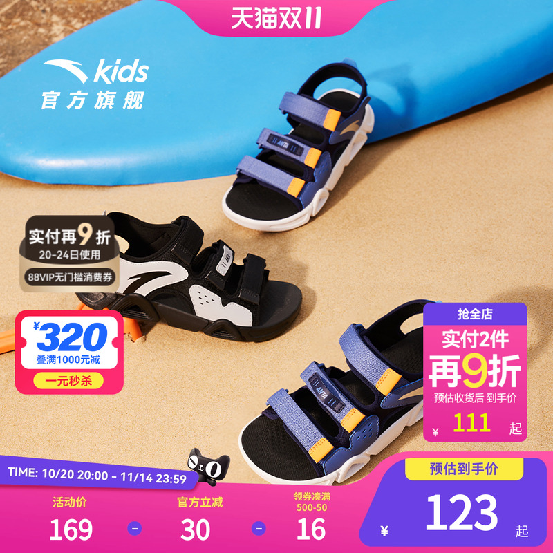 安踏露趾凉鞋男大童青少年沙滩鞋