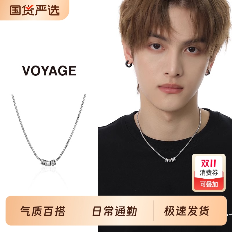 圆环转运珠吊坠项链高级小众男款锁骨链男士百搭男生配饰金属合金