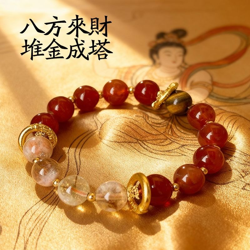 黄水晶多圈手串女款蜜蜡玛瑙手链