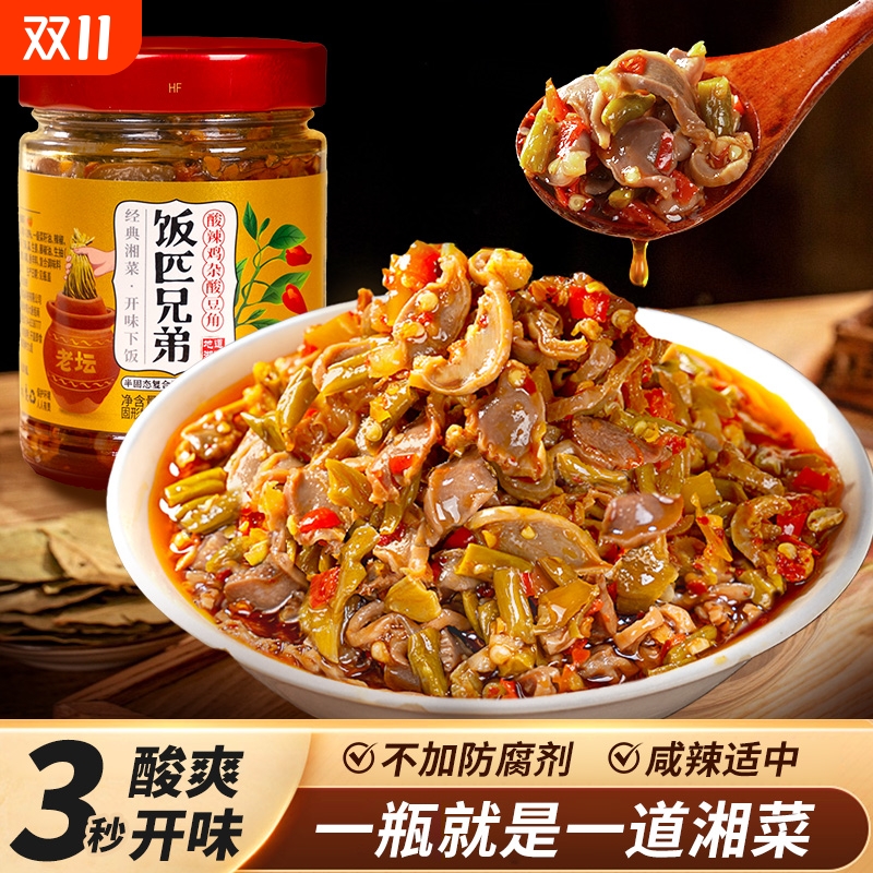 饭匹兄弟酸辣鸡杂下饭菜酸豆角湖南特产剁椒辣椒酱香辣拌饭酱瓶装