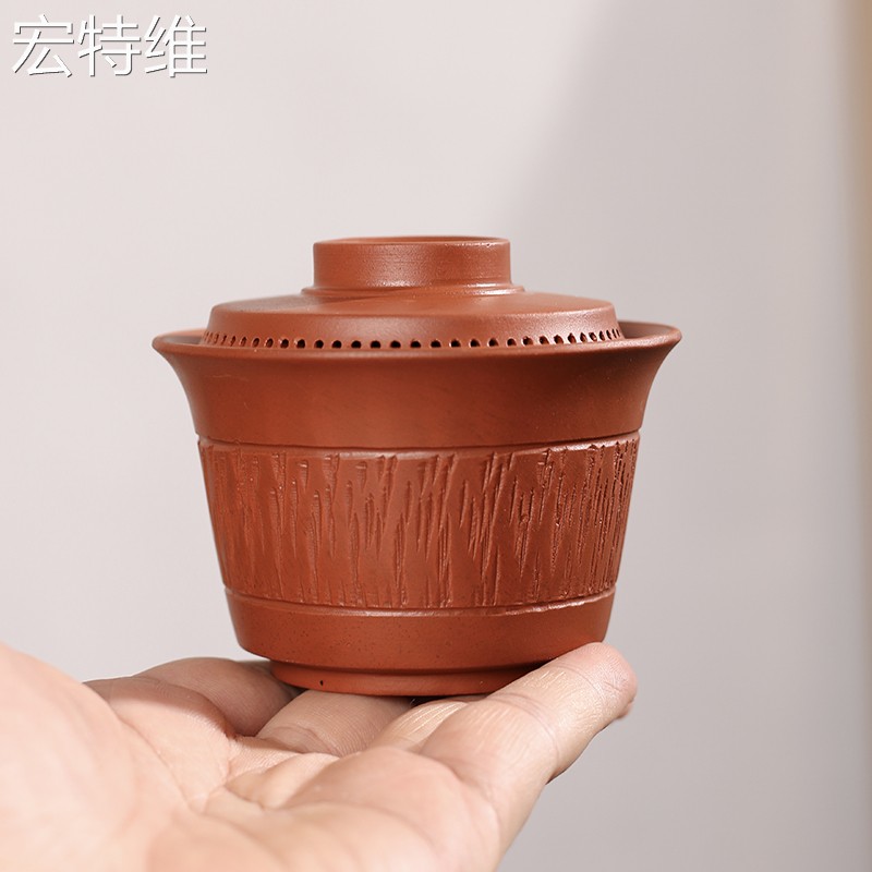 宏特维潮州原矿红泥手抓盖碗120ml全网孔不烫手出汤迅速可携式盖