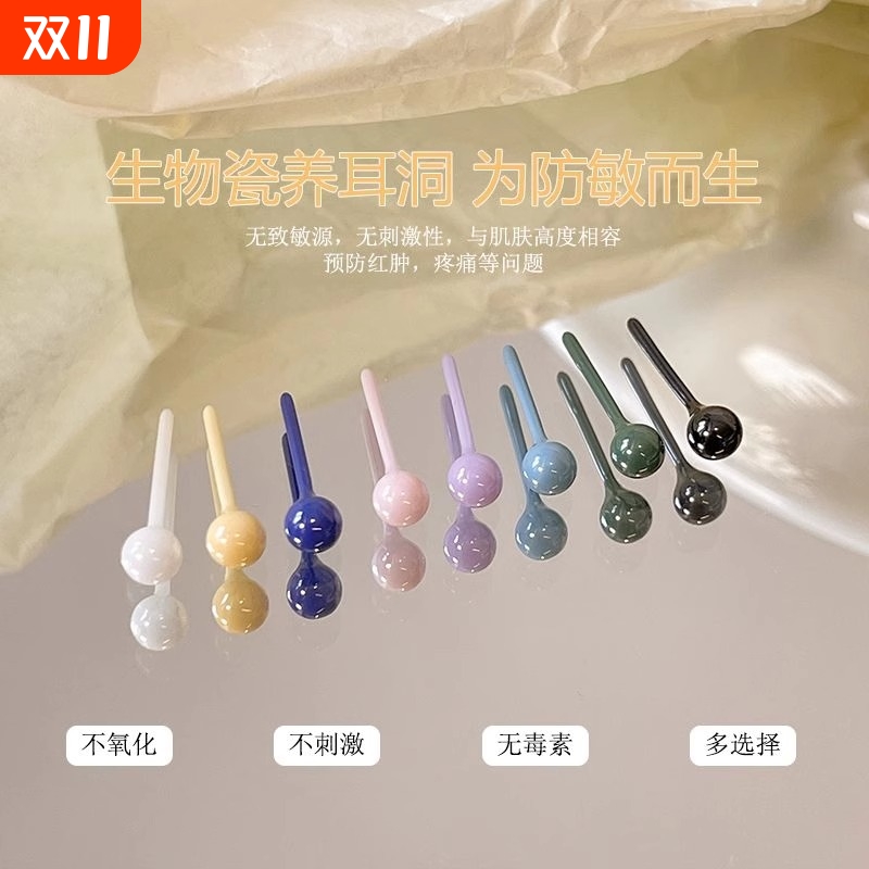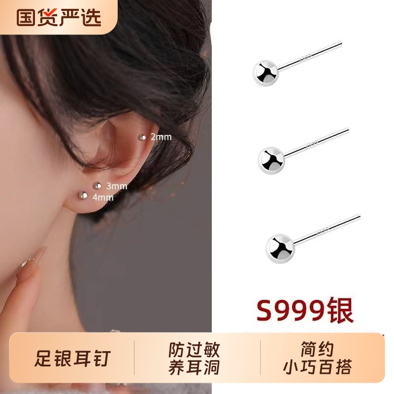 圆珠耳钉S999纯银耳钉女小巧银耳钉养耳洞耳饰拒绝过敏耳骨钉耳环