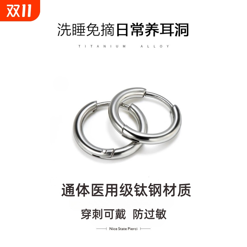 医用钛钢耳钉养耳洞素圈耳圈睡觉不用摘耳骨钉女不掉色防过敏耳饰