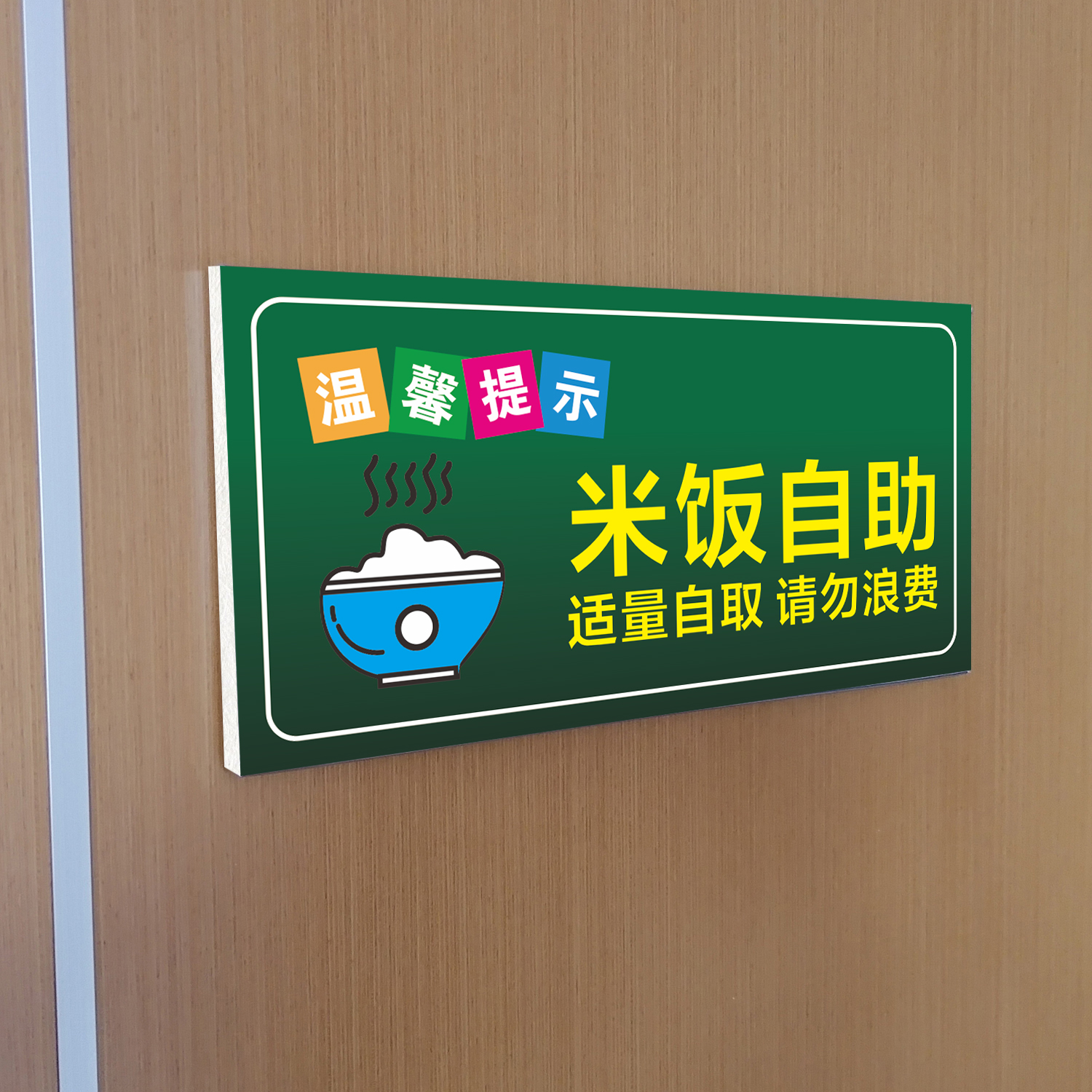 自助米饭提示牌免费加饭请勿浪费标示牌适量自取餐厅餐馆标墙贴X