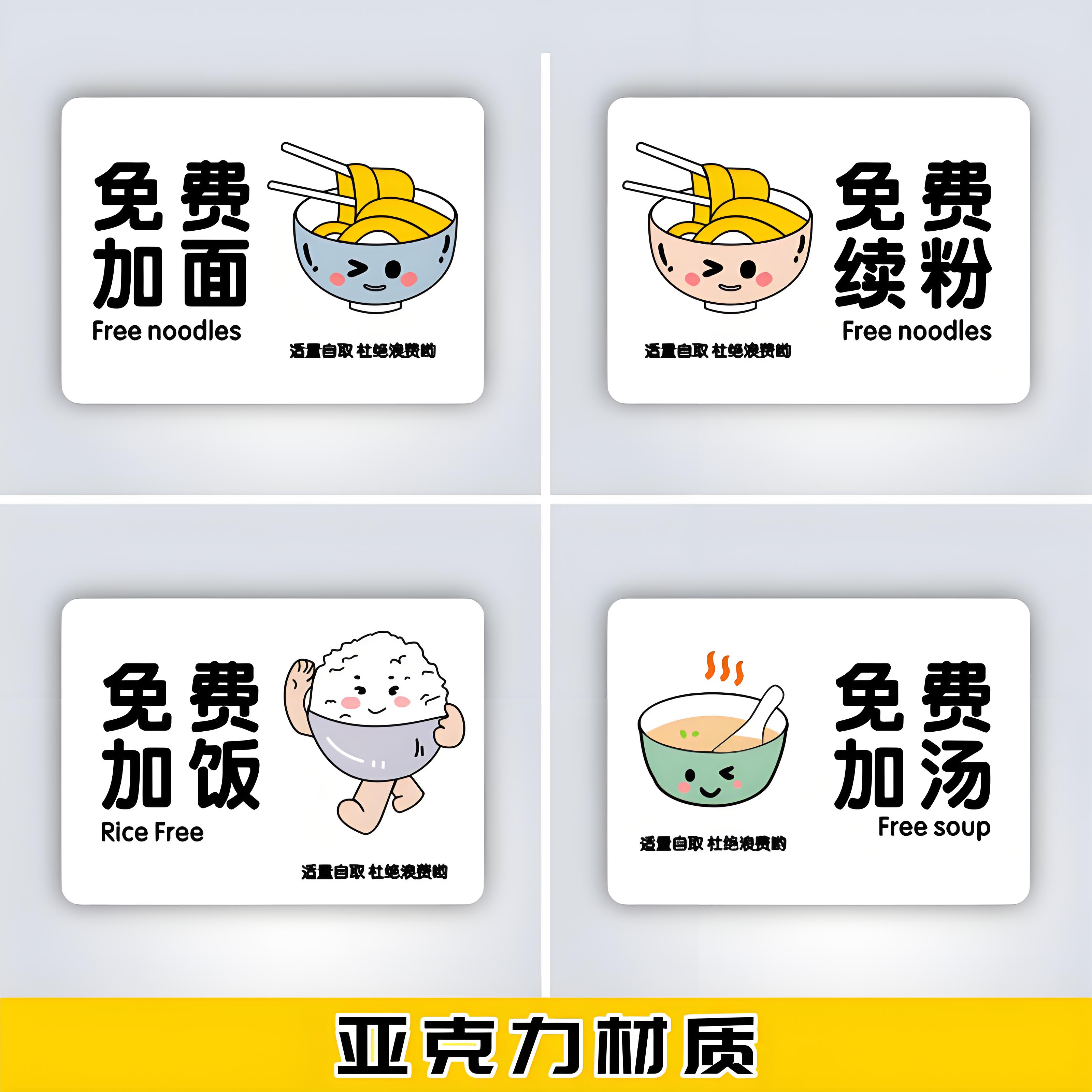 免费加饭加汤提示牌亚克力续粉面适量自取杜绝浪费温馨提示指示牌