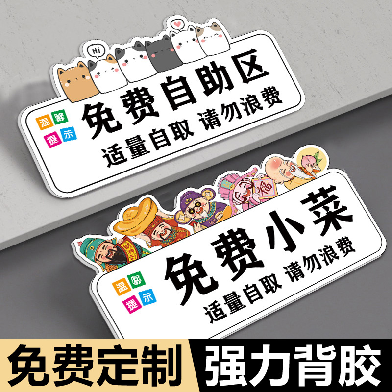 免费小菜提示牌饭店餐厅免费加饭指示牌墙贴火锅烤肉店免费自助调料区