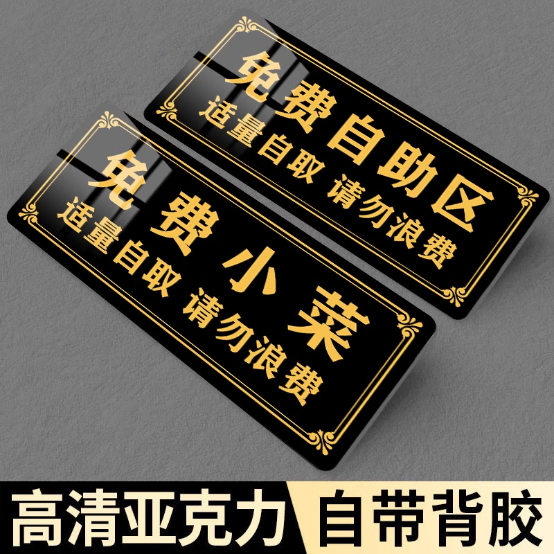 自助调料区指示牌免费自助区指示牌打包加一元亚克力标识牌定制饭店火