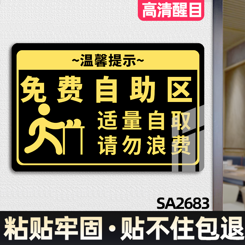 免费自助区调料区指示牌免费小菜自助调料区适量自取杜绝浪费提示牌餐