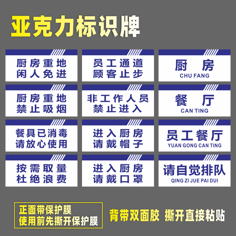 厨房重地闲人免进亚克力标识牌适量取餐杜绝浪费员工通道顾客止步