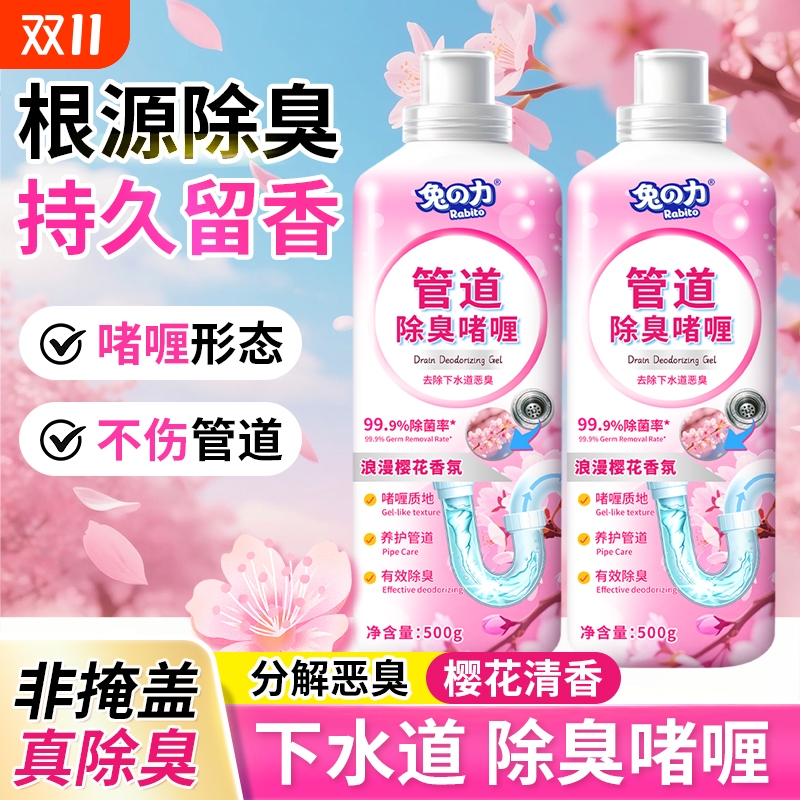 下水道除臭剂管道除臭啫喱防返臭味厕所管道反味卫生间去异味兔力