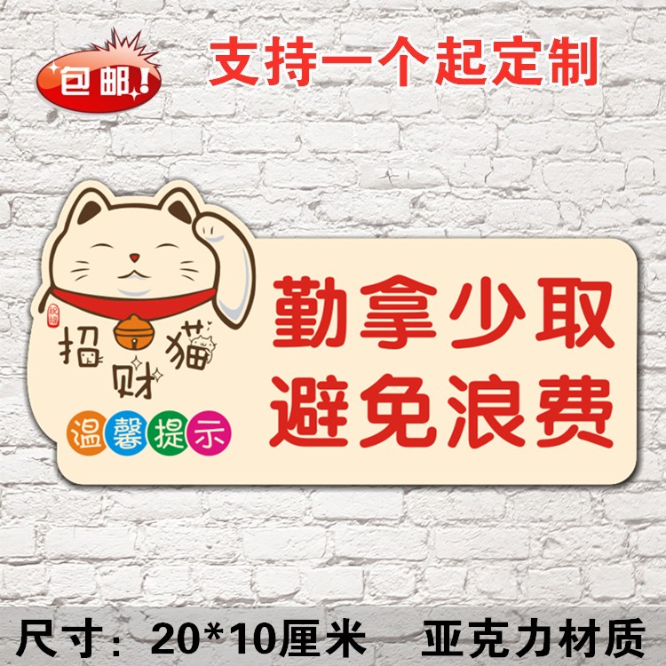 极速勤拿少e取 避免浪费亚克力温馨提示牌自助餐厅标识牌墙贴门牌